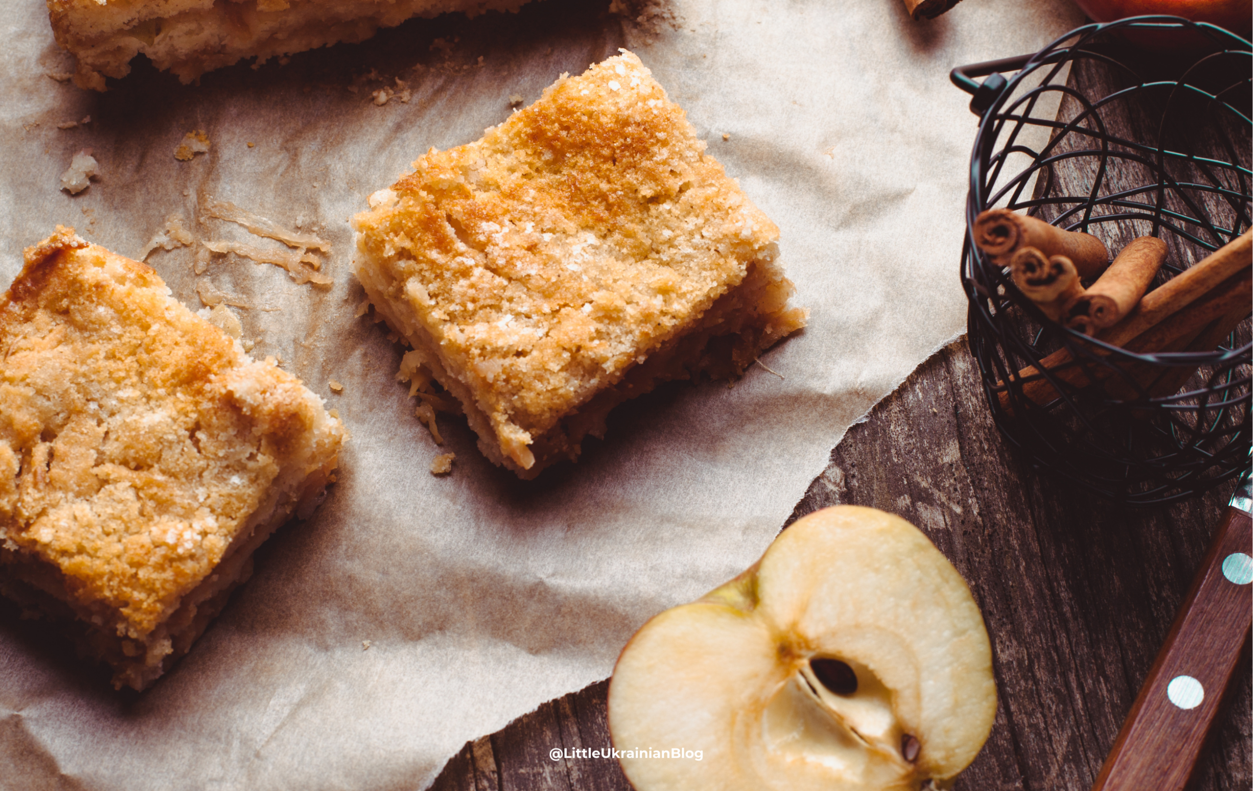 Apple-based cakes and pastries are very common. The classic is apple sponge «Бісквіт», where tart apple slices are baked into a light, fluffy batter. It’s simple, comforting, and easy to make abroad with local apple varieties.